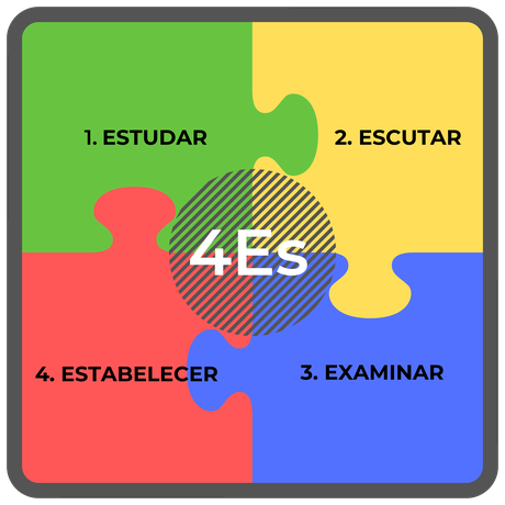 Essas 4 peças são a chave do quebra cabeça. No curso, você vai aprender a "Masterizar" esses pilares e tudo que tem em volta de cada um deles. Assim você vai aprender a: ESTUDAR, ESCUTAR, EXAMINAR, ESTABELECER.